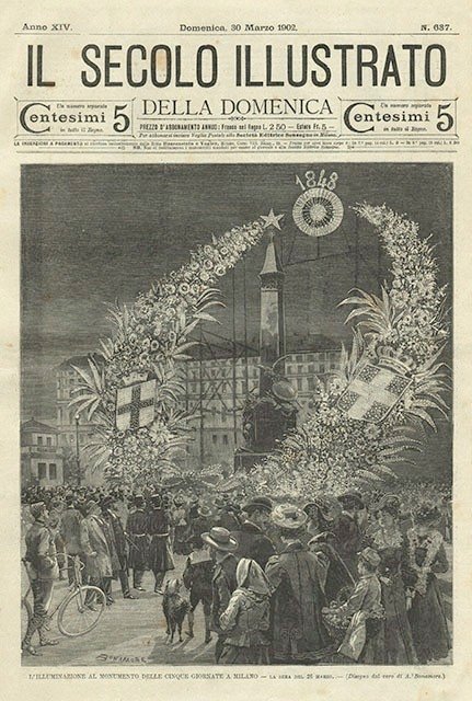 L’illuminazione al monumento delle Cinque Giornate a Milano - La sera del 26 marzo