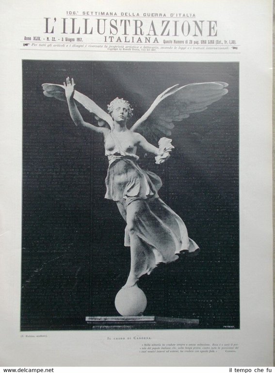 L'Illustrazione Italiana Rivista originale del 3 Giugno 1917 Anno 44 - N. 22 Rarità per appassionati e collezionisti Segue sotto solamente un saggio del ricco contenuto presente Illustrato in copertina (segue foto): Il credo di Cadorna Illustrazione presente nelle pagine interne (segue foto): La nostra vittoriosa avanzata sul Carso Altra Illustrazione presente nelle pagine interne (segue foto): Il popolo d'Italia commemora il secondo anniversario della guerra Tra gli argomenti trattati e le notizie contenute: La nostra vittoriosa avanzata verso l'Hermada e sul fronte Giulio Il mulino di Pietra Rossa dove infuriò la battaglia dal 22 al 24 maggio Monfalcone: nella via del Duomo, durante l'azione. L'artiglieria inglese in azione sul nostro fronte. La marina da guerra prende parte all'azione. La posta per la via del cielo. La nave-appoggio sommergibili brasiliana Cearà .e tanto altro ancora! Qualora vogliate maggiori delucidazioni contattateci. In questo negozio troverai un'intera categoria dedicata alla collezione dell'Illustrazione Italiana , ne inseriamo diverse giornalmente. Sotto il link diretto a tutta la collezione: Riviste disponibili Cliccaci sopra, troverai di certo ciò che cerchi! L'illustrazione Italiana è stata una rivista settimanale italiana con sede a Milano, pubblicata ininterrottamente dal 1873 al 1962 per un totale di quasi 5 000 numeri. Fondata a Milano con la testata «Nuova illustrazione universale», fu edita dalla casa editrice Fratelli Treves, fondata da Emilio Treves, il quale fu anche il primo direttore della rivista. L'illustrazione italiana comincia ad avere un'ampia diffusione negli ambienti della medio-alta borghesia, grazie alla qualità degli articoli e soprattutto delle illustrazioni, spesso affidate ad artisti di primo piano come Achille Beltrame, Pietro Scoppetta, Luigi Bompard, Giuseppe Cosenza ed Ettore Ximenes (il quale svolgeva anche le funzioni di vicedirettore), tale qualità fu mantenuta poi nel tempo anche in seguito all'avvento della fotografia, tecnica che vide rappresentati sulle pagine dell'«Illustrazione» alcuni tra i migliori fotogiornalisti nazionali: Armando Bruni, Mario Crimella, Giulio Parisio ed Emilio Sommariva. Per i testi il periodico si avvalse della collaborazione, in qualità di articolisti, di alcuni dei nomi più importanti della letteratura italiana, fra cui ricordiamo Giosuè Carducci, Grazia Deledda e Luigi Pirandello (premi Nobel per la letteratura), lo scrittore verista Giovanni Verga, il poeta Gabriele D'Annunzio, il critico letterario e favolista Luigi Capuana ed Edmondo De Amicis, autore del celeberrimo romanzo "Cuore", capolavoro della letteratura per ragazzi. La grande fortuna dell'Illustrazione Italiana durò fino alla morte di Emilio Treves (1916), dopo la quale, pur avendo ancora tra i propri collaboratori scrittori del calibro di Eugenio Montale, Elio Vittorini, Salvatore Quasimodo, Riccardo Bacchelli, Italo Pietra, Niccolò Giani e Sergio Solmi, la rivista cominciò a mostrare i segni di un lento declino. La promulgazione delle leggi razziali fasciste accelerò il processo in atto: nel 1939 la Treves dovette cedere l'azienda alla Garzanti. Verso la metà del 1942, in seguito agli eventi della seconda guerra mondiale, L'illustrazione rallentò le sue uscite, fino ad essere trasformata in mensile nel 1951 da Livio Garzanti. Gli anni cinquanta videro la crescita vertiginosa dei rotocalchi, settimanali popolari di attualità. «L'Illustrazione Italiana» vide ridursi progressivamente il suo spazio, finché Garzanti la chiuse nel 1962. L'editore Guanda riprese la testata alla fine del 1981 e la ripubblicò con periodicità bimestrale. Il tentativo non incontrò sufficiente fortuna e la rivista fu chiusa nel 1996. Paypal Carta di credito Bonifico bancario Spedizione con posta ordinaria o raccomandata scelta dall'Acquirente nel momento del pagamento