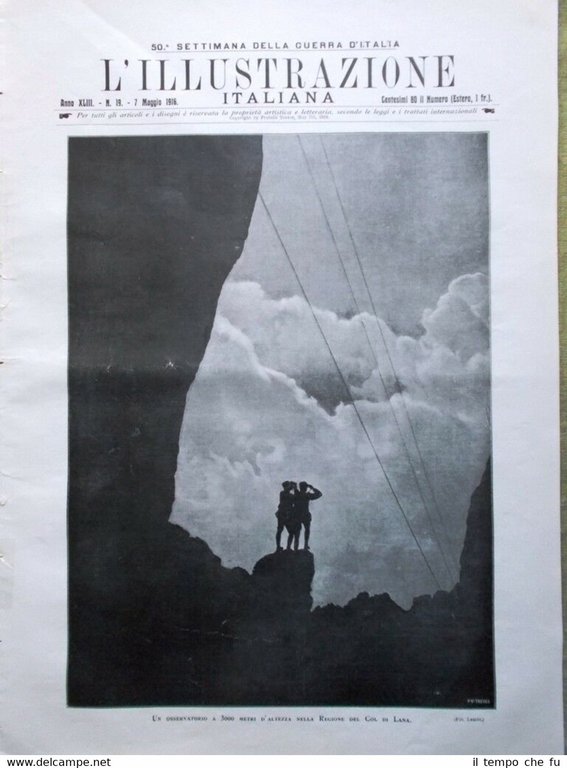 L'Illustrazione Italiana Rivista originale del 7 Maggio 1916 Anno 43 - N. 19 Rarità per appassionati e collezionisti Segue sotto solamente un saggio del ricco contenuto presente Illustrato in copertina (segue foto): Un osservatorio a 3000 metri d'altezza nella Regione del Col di Lana Illustrazione presente nelle pagine interne (segue foto): Una tragica visione delle rovine di Ypres dopo 18 mesi di bombardamento Altra Illustrazione presente nelle pagine interne (segue foto): Caduti per la patria Tra gli argomenti trattati e le notizie contenute: Alle porte di Rovereto-Mori La rivolta in Irlanda. Una festa offerta dal principe ereditario ai Giovani Esploratori a Villa Savoia. Osservatori e vedette. La mina del Col di Lana. I funerali delle vittime degli aeroplani austriaci a Treviso. .e tanto altro ancora! Qualora vogliate maggiori delucidazioni contattateci. In questo negozio troverai un'intera categoria dedicata alla collezione dell'Illustrazione Italiana , ne inseriamo diverse giornalmente. Sotto il link diretto a tutta la collezione: Riviste disponibili Cliccaci sopra, troverai di certo ciò che cerchi! L'illustrazione Italiana è stata una rivista settimanale italiana con sede a Milano, pubblicata ininterrottamente dal 1873 al 1962 per un totale di quasi 5 000 numeri. Fondata a Milano con la testata «Nuova illustrazione universale», fu edita dalla casa editrice Fratelli Treves, fondata da Emilio Treves, il quale fu anche il primo direttore della rivista. L'illustrazione italiana comincia ad avere un'ampia diffusione negli ambienti della medio-alta borghesia, grazie alla qualità degli articoli e soprattutto delle illustrazioni, spesso affidate ad artisti di primo piano come Achille Beltrame, Pietro Scoppetta, Luigi Bompard, Giuseppe Cosenza ed Ettore Ximenes (il quale svolgeva anche le funzioni di vicedirettore), tale qualità fu mantenuta poi nel tempo anche in seguito all'avvento della fotografia, tecnica che vide rappresentati sulle pagine dell'«Illustrazione» alcuni tra i migliori fotogiornalisti nazionali: Armando Bruni, Mario Crimella, Giulio Parisio ed Emilio Sommariva. Per i testi il periodico si avvalse della collaborazione, in qualità di articolisti, di alcuni dei nomi più importanti della letteratura italiana, fra cui ricordiamo Giosuè Carducci, Grazia Deledda e Luigi Pirandello (premi Nobel per la letteratura), lo scrittore verista Giovanni Verga, il poeta Gabriele D'Annunzio, il critico letterario e favolista Luigi Capuana ed Edmondo De Amicis, autore del celeberrimo romanzo "Cuore", capolavoro della letteratura per ragazzi. La grande fortuna dell'Illustrazione Italiana durò fino alla morte di Emilio Treves (1916), dopo la quale, pur avendo ancora tra i propri collaboratori scrittori del calibro di Eugenio Montale, Elio Vittorini, Salvatore Quasimodo, Riccardo Bacchelli, Italo Pietra, Niccolò Giani e Sergio Solmi, la rivista cominciò a mostrare i segni di un lento declino. La promulgazione delle leggi razziali fasciste accelerò il processo in atto: nel 1939 la Treves dovette cedere l'azienda alla Garzanti. Verso la metà del 1942, in seguito agli eventi della seconda guerra mondiale, L'illustrazione rallentò le sue uscite, fino ad essere trasformata in mensile nel 1951 da Livio Garzanti. Gli anni cinquanta videro la crescita vertiginosa dei rotocalchi, settimanali popolari di attualità. «L'Illustrazione Italiana» vide ridursi progressivamente il suo spazio, finché Garzanti la chiuse nel 1962. L'editore Guanda riprese la testata alla fine del 1981 e la ripubblicò con periodicità bimestrale. Il tentativo non incontrò sufficiente fortuna e la rivista fu chiusa nel 1996. Paypal Carta di credito Bonifico bancario Spedizione con posta ordinaria o raccomandata scelta dall'Acquirente nel momento del pagamento