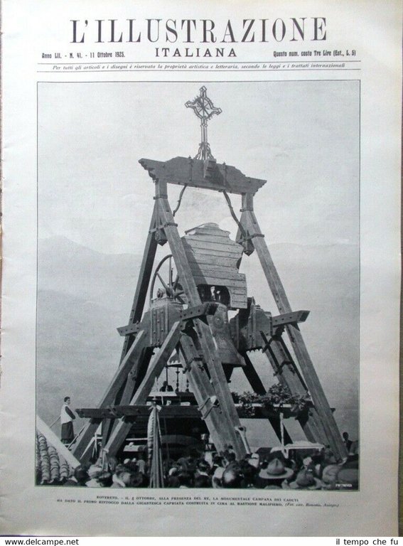 L'Illustrazione Italiana Rivista originale del 11 Ottobre 1925 Anno 52 - N. 41 Rarità per appassionati e collezionisti Segue sotto solamente un saggio del ricco contenuto presente Illustrato in copertina (segue foto): Rovereto: la monumentale campana dei caduti Illustrazione presente nelle pagine interne (segue foto): Città e castelli del Piemonte fotografati dagli aeroplani: Torino, Superga, Moncalieri, Agliè Altra Illustrazione presente nelle pagine interne (segue foto): La conferenza di Locarno Tra gli argomenti trattati e le notizie contenute: La seconda mostra biennale d'arte decorativa di Monza L'Italia e l'America in contatto telegrafico sottomarino La solenne commemorazione a Spezia dei morti del "Veniero" L'aerocrociera italiana nell'Europa orientale L'Alfa Romeo campione mondiale di perfezione meccanica Oneglia e gli stabilimenti Sasso .e tanto altro ancora! Qualora vogliate maggiori delucidazioni contattateci. In questo negozio troverai un'intera categoria dedicata alla collezione dell'Illustrazione Italiana , ne inseriamo diverse giornalmente. Sotto il link diretto a tutta la collezione: Riviste disponibili Cliccaci sopra, troverai di certo ciò che cerchi! L'illustrazione Italiana è stata una rivista settimanale italiana con sede a Milano, pubblicata ininterrottamente dal 1873 al 1962 per un totale di quasi 5 000 numeri. Fondata a Milano con la testata «Nuova illustrazione universale», fu edita dalla casa editrice Fratelli Treves, fondata da Emilio Treves, il quale fu anche il primo direttore della rivista. L'illustrazione italiana comincia ad avere un'ampia diffusione negli ambienti della medio-alta borghesia, grazie alla qualità degli articoli e soprattutto delle illustrazioni, spesso affidate ad artisti di primo piano come Achille Beltrame, Pietro Scoppetta, Luigi Bompard, Giuseppe Cosenza ed Ettore Ximenes (il quale svolgeva anche le funzioni di vicedirettore), tale qualità fu mantenuta poi nel tempo anche in seguito all'avvento della fotografia, tecnica che vide rappresentati sulle pagine dell'«Illustrazione» alcuni tra i migliori fotogiornalisti nazionali: Armando Bruni, Mario Crimella, Giulio Parisio ed Emilio Sommariva. Per i testi il periodico si avvalse della collaborazione, in qualità di articolisti, di alcuni dei nomi più importanti della letteratura italiana, fra cui ricordiamo Giosuè Carducci, Grazia Deledda e Luigi Pirandello (premi Nobel per la letteratura), lo scrittore verista Giovanni Verga, il poeta Gabriele D'Annunzio, il critico letterario e favolista Luigi Capuana ed Edmondo De Amicis, autore del celeberrimo romanzo "Cuore", capolavoro della letteratura per ragazzi. La grande fortuna dell'Illustrazione Italiana durò fino alla morte di Emilio Treves (1916), dopo la quale, pur avendo ancora tra i propri collaboratori scrittori del calibro di Eugenio Montale, Elio Vittorini, Salvatore Quasimodo, Riccardo Bacchelli, Italo Pietra, Niccolò Giani e Sergio Solmi, la rivista cominciò a mostrare i segni di un lento declino. La promulgazione delle leggi razziali fasciste accelerò il processo in atto: nel 1939 la Treves dovette cedere l'azienda alla Garzanti. Verso la metà del 1942, in seguito agli eventi della seconda guerra mondiale, L'illustrazione rallentò le sue uscite, fino ad essere trasformata in mensile nel 1951 da Livio Garzanti. Gli anni cinquanta videro la crescita vertiginosa dei rotocalchi, settimanali popolari di attualità. «L'Illustrazione Italiana» vide ridursi progressivamente il suo spazio, finché Garzanti la chiuse nel 1962. L'editore Guanda riprese la testata alla fine del 1981 e la ripubblicò con periodicità bimestrale. Il tentativo non incontrò sufficiente fortuna e la rivista fu chiusa nel 1996. Paypal Carta di credito Bonifico bancario Spedizione con posta ordinaria o raccomandata scelta dall'Acquirente nel momento del pagamento