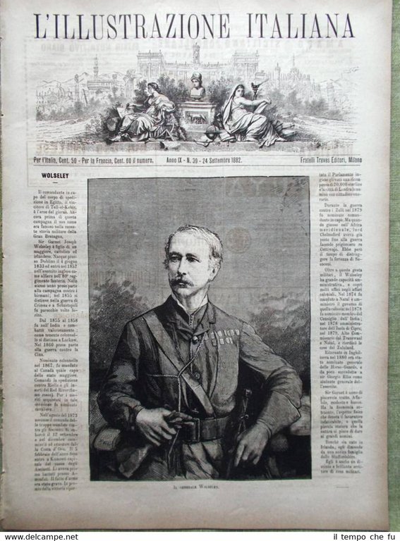 L'Illustrazione Italiana Rivista originale del 24 Settembre 1882 Anno 9 - N. 39 Rarità per appassionati e collezionisti Segue sotto solamente un saggio del ricco contenuto presente Illustrato in copertina (segue foto): Il generale Garnet Wolseley Illustrazione presente nelle pagine interne (segue foto): Le grandi manovre dell'Umbria Altra Illustrazione presente nelle pagine interne (segue foto): Lungo la ferrovia del Gottardo Tra gli argomenti trattati e le notizie contenute: L'esposizione di Messina e di Arezzo Lettere dall'Egitto: Attia Hassan. Invetriate dipinte da Francesco Moretti di Perugia. Brera nel 1882: verso sera (Angelo Dall'Oca). La morte di Paolo Giacometti. .e tanto altro ancora! Qualora vogliate maggiori delucidazioni contattateci. In questo negozio troverai un'intera categoria dedicata alla collezione dell'Illustrazione Italiana , ne inseriamo diverse giornalmente. Sotto il link diretto a tutta la collezione: Riviste disponibili Cliccaci sopra, troverai di certo ciò che cerchi! L'illustrazione Italiana è stata una rivista settimanale italiana con sede a Milano, pubblicata ininterrottamente dal 1873 al 1962 per un totale di quasi 5 000 numeri. Fondata a Milano con la testata «Nuova illustrazione universale», fu edita dalla casa editrice Fratelli Treves, fondata da Emilio Treves, il quale fu anche il primo direttore della rivista. L'illustrazione italiana comincia ad avere un'ampia diffusione negli ambienti della medio-alta borghesia, grazie alla qualità degli articoli e soprattutto delle illustrazioni, spesso affidate ad artisti di primo piano come Achille Beltrame, Pietro Scoppetta, Luigi Bompard, Giuseppe Cosenza ed Ettore Ximenes (il quale svolgeva anche le funzioni di vicedirettore), tale qualità fu mantenuta poi nel tempo anche in seguito all'avvento della fotografia, tecnica che vide rappresentati sulle pagine dell'«Illustrazione» alcuni tra i migliori fotogiornalisti nazionali: Armando Bruni, Mario Crimella, Giulio Parisio ed Emilio Sommariva. Per i testi il periodico si avvalse della collaborazione, in qualità di articolisti, di alcuni dei nomi più importanti della letteratura italiana, fra cui ricordiamo Giosuè Carducci, Grazia Deledda e Luigi Pirandello (premi Nobel per la letteratura), lo scrittore verista Giovanni Verga, il poeta Gabriele D'Annunzio, il critico letterario e favolista Luigi Capuana ed Edmondo De Amicis, autore del celeberrimo romanzo "Cuore", capolavoro della letteratura per ragazzi. La grande fortuna dell'Illustrazione Italiana durò fino alla morte di Emilio Treves (1916), dopo la quale, pur avendo ancora tra i propri collaboratori scrittori del calibro di Eugenio Montale, Elio Vittorini, Salvatore Quasimodo, Riccardo Bacchelli, Italo Pietra, Niccolò Giani e Sergio Solmi, la rivista cominciò a mostrare i segni di un lento declino. La promulgazione delle leggi razziali fasciste accelerò il processo in atto: nel 1939 la Treves dovette cedere l'azienda alla Garzanti. Verso la metà del 1942, in seguito agli eventi della seconda guerra mondiale, L'illustrazione rallentò le sue uscite, fino ad essere trasformata in mensile nel 1951 da Livio Garzanti. Gli anni cinquanta videro la crescita vertiginosa dei rotocalchi, settimanali popolari di attualità. «L'Illustrazione Italiana» vide ridursi progressivamente il suo spazio, finché Garzanti la chiuse nel 1962. L'editore Guanda riprese la testata alla fine del 1981 e la ripubblicò con periodicità bimestrale. Il tentativo non incontrò sufficiente fortuna e la rivista fu chiusa nel 1996. Paypal Carta di credito Bonifico bancario Spedizione con posta ordinaria o tracciata scelta dall'Acquirente nel momento del pagamento