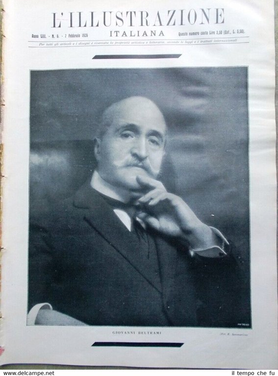 L'Illustrazione Italiana Rivista originale del 7 Febbraio 1926 Anno 53 - N. 6 Rarità per appassionati e collezionisti Segue sotto solamente un saggio del ricco contenuto presente Illustrato in copertina (segue foto): La morte di Giovanni Beltrami Illustrazione presente nelle pagine interne (segue foto): La principessa Jolanda e il suo bambino Altra Illustrazione presente nelle pagine interne (segue foto): L'inaugurazione della lina aerea Genova-Napoli-Palermo Tra gli argomenti trattati e le notizie contenute: Giovanni Beltrami maestro d'arte Ugo Ojetti festeggiato a Milano Il felice esito della missione "Volpi" a Londra Il "raid" transatlantico del comandante spagnolo Ramon Franco Belle arti: vita artistica milanese - Maria Lednika - Giuseppe Mascarini - Michele Casciella L'ultima cerimonia dell'Anno Santo Napoli festeggia l'ingegnere Nicola Romeo Uomini e cose del giorno: Il principe Umberto tra gli orfani di guerra della borgata Sassi .e tanto altro ancora!. Qualora vogliate maggiori delucidazioni contattateci. In questo negozio troverai un'intera categoria dedicata alla collezione dell'Illustrazione Italiana , ne inseriamo diverse giornalmente. Sotto il link diretto a tutta la collezione: Riviste disponibili Cliccaci sopra, troverai di certo ciò che cerchi! L'illustrazione Italiana è stata una rivista settimanale italiana con sede a Milano, pubblicata ininterrottamente dal 1873 al 1962 per un totale di quasi 5 000 numeri. Fondata a Milano con la testata «Nuova illustrazione universale», fu edita dalla casa editrice Fratelli Treves, fondata da Emilio Treves, il quale fu anche il primo direttore della rivista. L'illustrazione italiana comincia ad avere un'ampia diffusione negli ambienti della medio-alta borghesia, grazie alla qualità degli articoli e soprattutto delle illustrazioni, spesso affidate ad artisti di primo piano come Achille Beltrame, Pietro Scoppetta, Luigi Bompard, Giuseppe Cosenza ed Ettore Ximenes (il quale svolgeva anche le funzioni di vicedirettore), tale qualità fu mantenuta poi nel tempo anche in seguito all'avvento della fotografia, tecnica che vide rappresentati sulle pagine dell'«Illustrazione» alcuni tra i migliori fotogiornalisti nazionali: Armando Bruni, Mario Crimella, Giulio Parisio ed Emilio Sommariva. Per i testi il periodico si avvalse della collaborazione, in qualità di articolisti, di alcuni dei nomi più importanti della letteratura italiana, fra cui ricordiamo Giosuè Carducci, Grazia Deledda e Luigi Pirandello (premi Nobel per la letteratura), lo scrittore verista Giovanni Verga, il poeta Gabriele D'Annunzio, il critico letterario e favolista Luigi Capuana ed Edmondo De Amicis, autore del celeberrimo romanzo "Cuore", capolavoro della letteratura per ragazzi. La grande fortuna dell'Illustrazione Italiana durò fino alla morte di Emilio Treves (1916), dopo la quale, pur avendo ancora tra i propri collaboratori scrittori del calibro di Eugenio Montale, Elio Vittorini, Salvatore Quasimodo, Riccardo Bacchelli, Italo Pietra, Niccolò Giani e Sergio Solmi, la rivista cominciò a mostrare i segni di un lento declino. La promulgazione delle leggi razziali fasciste accelerò il processo in atto: nel 1939 la Treves dovette cedere l'azienda alla Garzanti. Verso la metà del 1942, in seguito agli eventi della seconda guerra mondiale, L'illustrazione rallentò le sue uscite, fino ad essere trasformata in mensile nel 1951 da Livio Garzanti. Gli anni cinquanta videro la crescita vertiginosa dei rotocalchi, settimanali popolari di attualità. «L'Illustrazione Italiana» vide ridursi progressivamente il suo spazio, finché Garzanti la chiuse nel 1962. L'editore Guanda riprese la testata alla fine del 1981 e la ripubblicò con periodicità bimestrale. Il tentativo non incontrò sufficiente fortuna e la rivista fu chiusa nel 1996. Paypal Carta di credito Bonifico bancario Spedizione con posta ordinaria o raccomandata scelta dall'Acquirente nel momento del pagamento