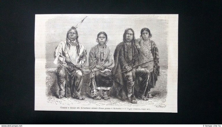 Rara incisione estratta da pubblicazione del 1876. .incisione che ha quindi oltre 141 anni! Dall'Opera L. Simonin: Attraverso gli Stati Uniti, dall'Atlantico al Pacifico Uomini e donne Sioux L'indiano ornato d'una piuma è Mohaska o il Cigno Bianco, capo Sioux Dimensioni Cm 18,00 x 13,00 EP1876 - 115 Qualora vogliate delle scansioni migliori contattateci, soddisferemo ogni vostra richiesta. Paypal Carta di credito Bonifico bancario Accuratamente adagiate su un cartoncino e protette da pellicola trasparente rigida, il tutto viene inserito dentro plico di adeguate dimensioni per proteggerne l'integrità.
