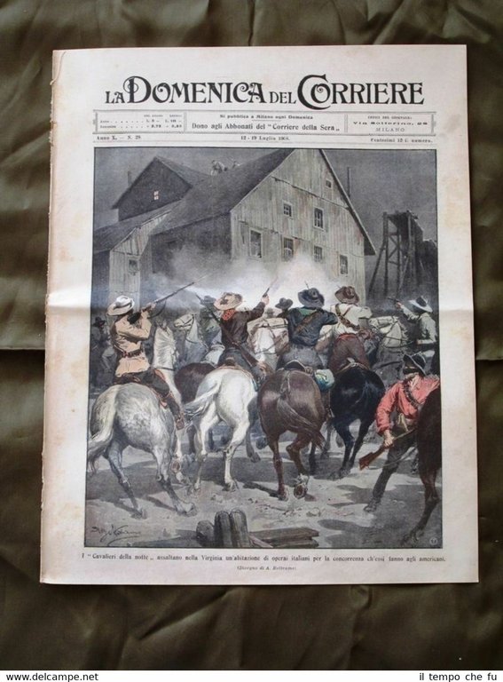 La Domenica del Corriere 12 Luglio1908 Cavalieri della notte Cavalli America