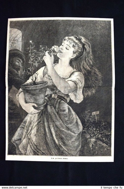 Rara incisione estratta da pubblicazione del 1876. .incisione che ha quindi oltre 141 anni! La prima rosa Dimensioni Cm 24,00 x 32,00 EP1876 - 009 Qualora vogliate delle scansioni migliori contattateci, soddisferemo ogni vostra richiesta. Paypal Carta di credito Bonifico bancario Accuratamente adagiate su un cartoncino e protette da pellicola trasparente rigida, il tutto viene inserito dentro plico di adeguate dimensioni per proteggerne l'integrità.