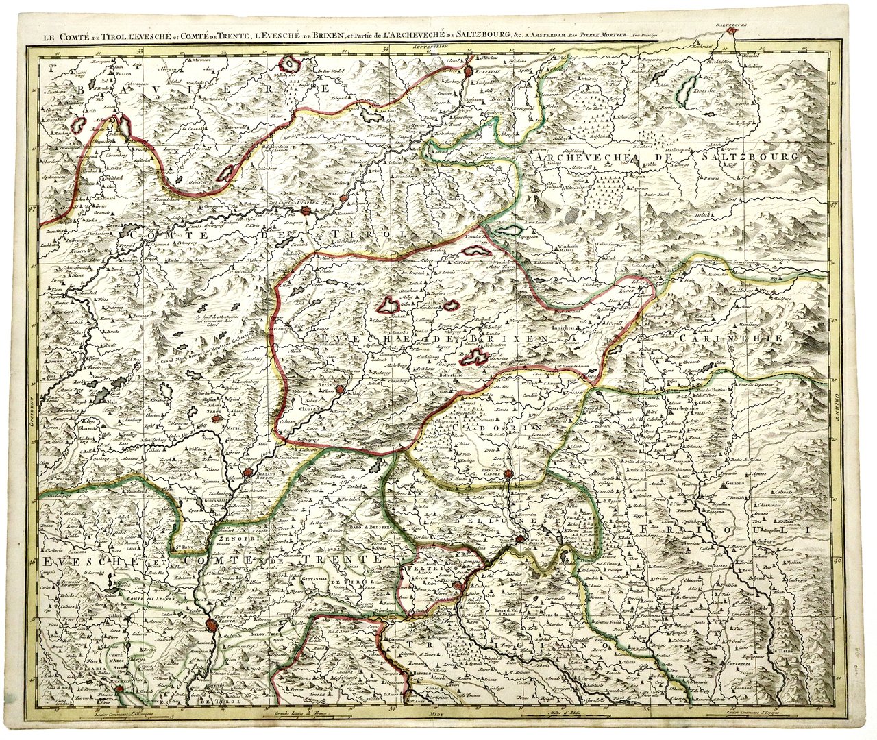 Le Comté de Tirol, l’Evensché et Comté de Trente, l’Evesché de Brixen et Partie de l’Archeveché de Saltzbourg. | Stampe | MORTIER PIERRE.