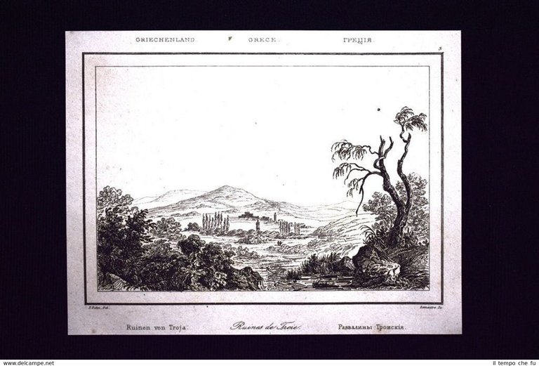 Incisione su acciaio Stampata su carta non retroscritta Estratta da pubblicazione del 1850. .incisione che ha quindi oltre 166 anni! Tavola facente parte della rara opera pubblicata in Parigi del 1850 "L'Univers Pittoresque" Autore: M.Ph. Le Blas Editore: Firmin Didot Le rovine della città di Troia Grecia UP-006 Dimensioni Cm 14,00 x 11,00 Qualora vogliate delle scansioni migliori contattateci, soddisferemo ogni vostra richiesta PaypalCarta di creditoBonifico bancario Accuratamente adagiate su un cartoncino e protette da pellicola trasparente rigida,il tutto viene inserito dentro plico di adeguate dimensioni per proteggerne l'integrità