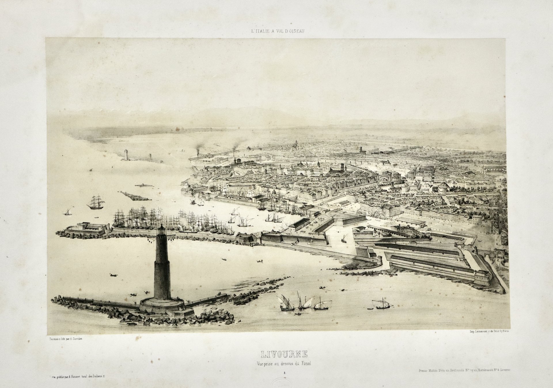 Livourne, vue prise au dessus de Fanal | Stampe | GUESDON ALFRED