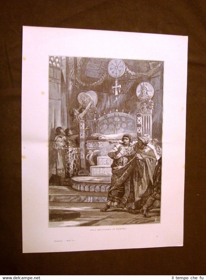 Medioevo d'Italia La fuga dell'Esarca di Ravenna Incisione di L.Pogliaghi | Stampe |