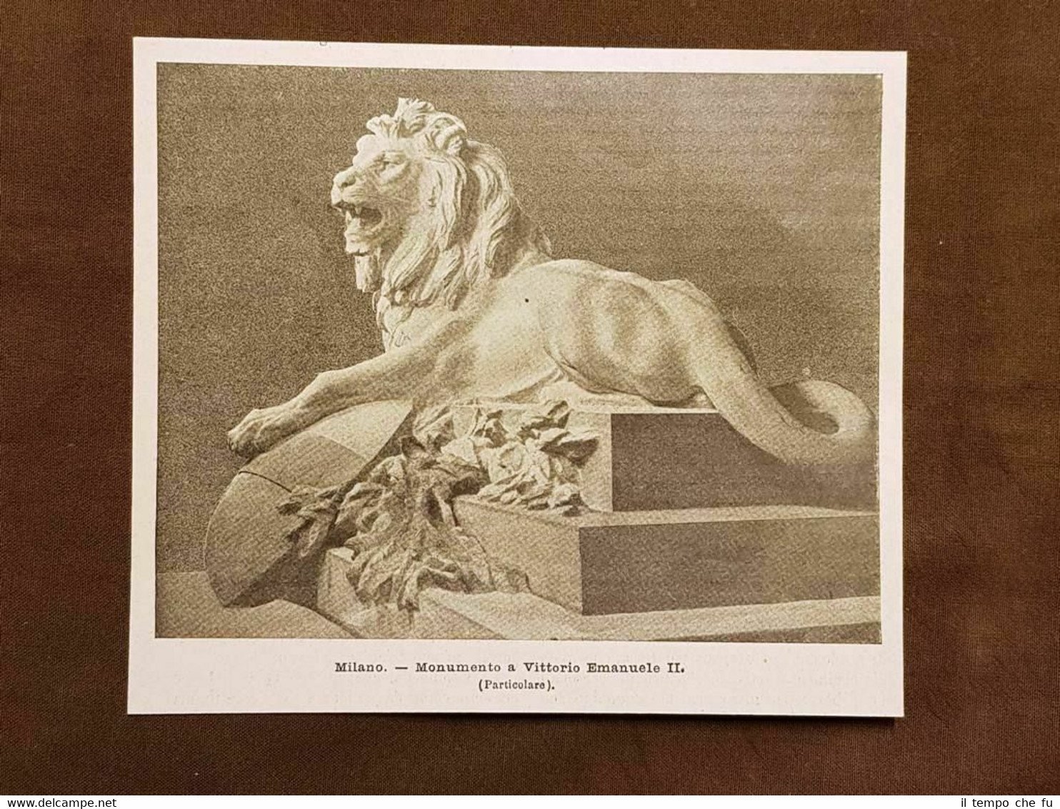 Milano nel 1896 Monumento a Re Vittorio Emanuele II di Savoia Particolare Leone | Stampe |