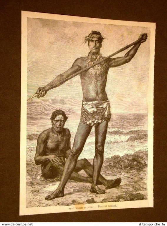 Rara Incisione Estratta da Rivista d'epoca del 1880 Moda e Costume Colonie di Francia nel 1880 Pescatori di Tahiti II1880-041T Cm 17,00 x 23,00 Qualora vogliate delle scansioni migliori contattateci, soddisferemo ogni vostra richiesta. Paypal Carta di credito Bonifico bancario Accuratamente adagiate su un cartoncino e protette da pellicola trasparente rigida il tutto viene inserito dentro plico di adeguate dimensioni per proteggerne l'integrità