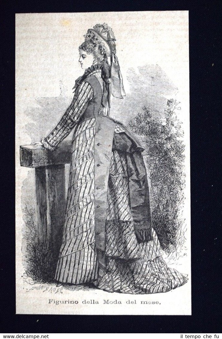 Moda e costume di donna 1800 Figurino della Moda del mese #2 Incisione del 1875