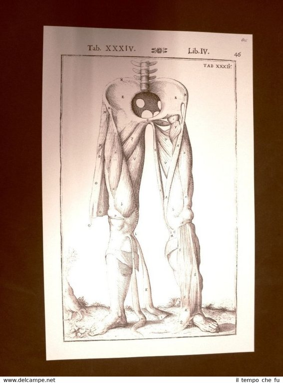 Muscoli delle gambe #1 Tavola anatomica Litografia Giulio Casseri 1627 Ristampa