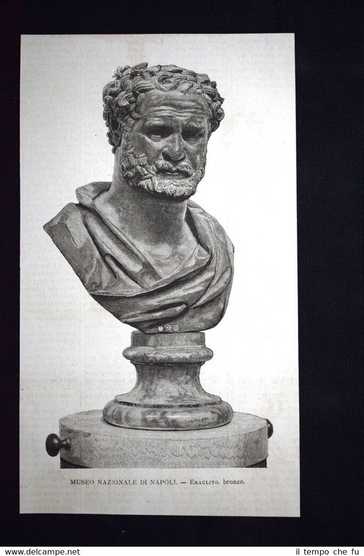 Rara incisione estratta da pubblicazione del 1876. .incisione che ha quindi oltre 141 anni! Museo Nazionale di Napoli - Eraclito, bronzo Dimensioni Cm 14,00 x 24,00 EP1876 - 106 Qualora vogliate delle scansioni migliori contattateci, soddisferemo ogni vostra richiesta. Paypal Carta di credito Bonifico bancario Accuratamente adagiate su un cartoncino e protette da pellicola trasparente rigida, il tutto viene inserito dentro plico di adeguate dimensioni per proteggerne l'integrità. ©