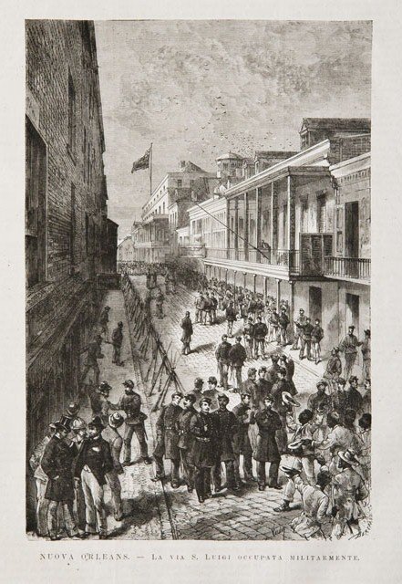 Nuova Orleans.- La via S. Luigi occupata militarmente | Stampe | Valnay dis. - Bertrand inc., Valnay dis. - Bertrand inc.