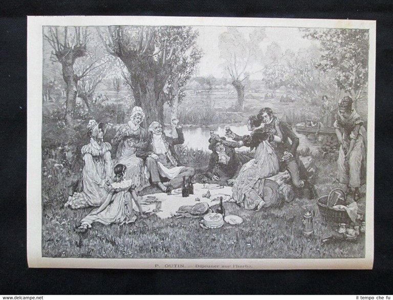Rara incisione estratta da pubblicazione del 1894 .stampa che ha quindi oltre 124 anni! P. Outin – Colazione sull’erba + L. Ed. Fournier – I grandi uomini di Lione Fronte-retro Dimensioni Cm 23,00 x 17,00 + 23,00 x 17,00 Illustration 1894 - 023 Qualora vogliate delle scansioni migliori contattateci, soddisferemo ogni vostra richiesta. Paypal Carta di credito Bonifico bancario Accuratamente adagiate su un cartoncino e protette da pellicola trasparente rigida, il tutto viene inserito dentro plico di adeguate dimensioni per proteggerne l'integrità.