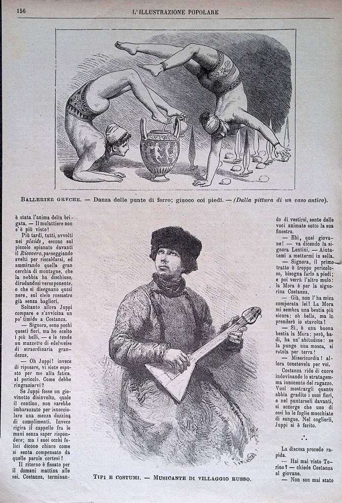 Pagina del 1886 Ballerine Greche Danza Punte Ferro Musicante Villaggio Russo