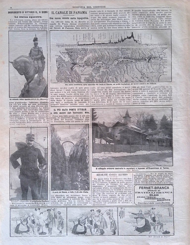 Pagina del 1911 Canale Panama Incendio Livorno Pietro di Serbia Diavolo Iselle