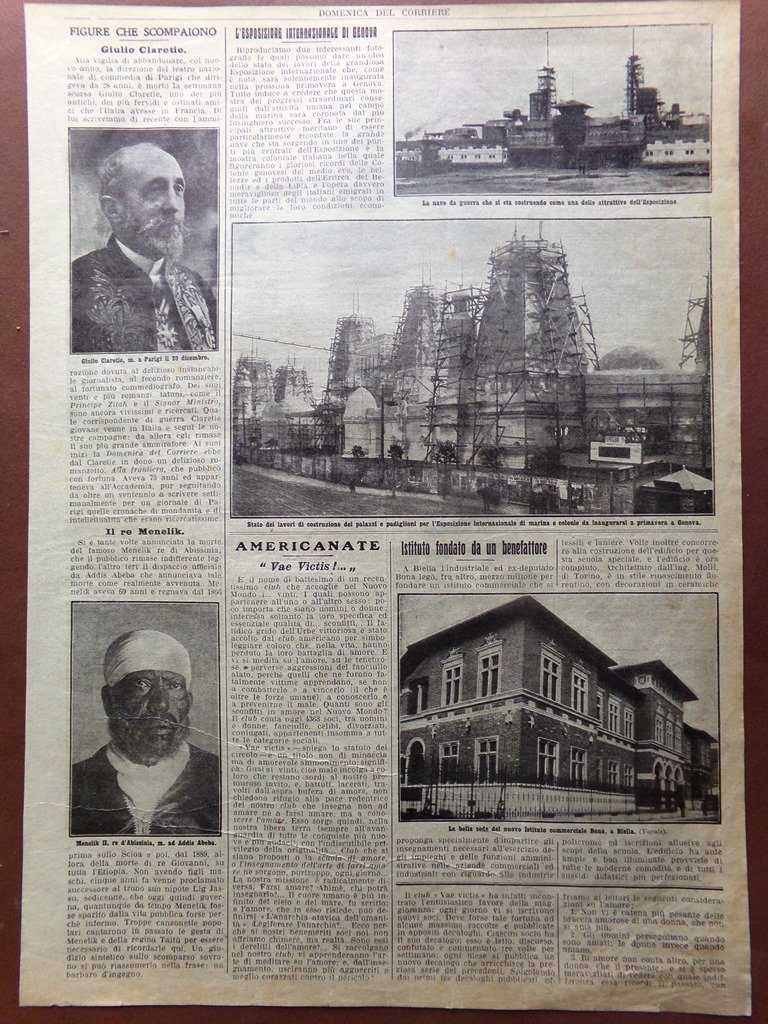 Pagina del 1914 Morte di Claretie Menelik Bona Biella Energia Cagliari Genova