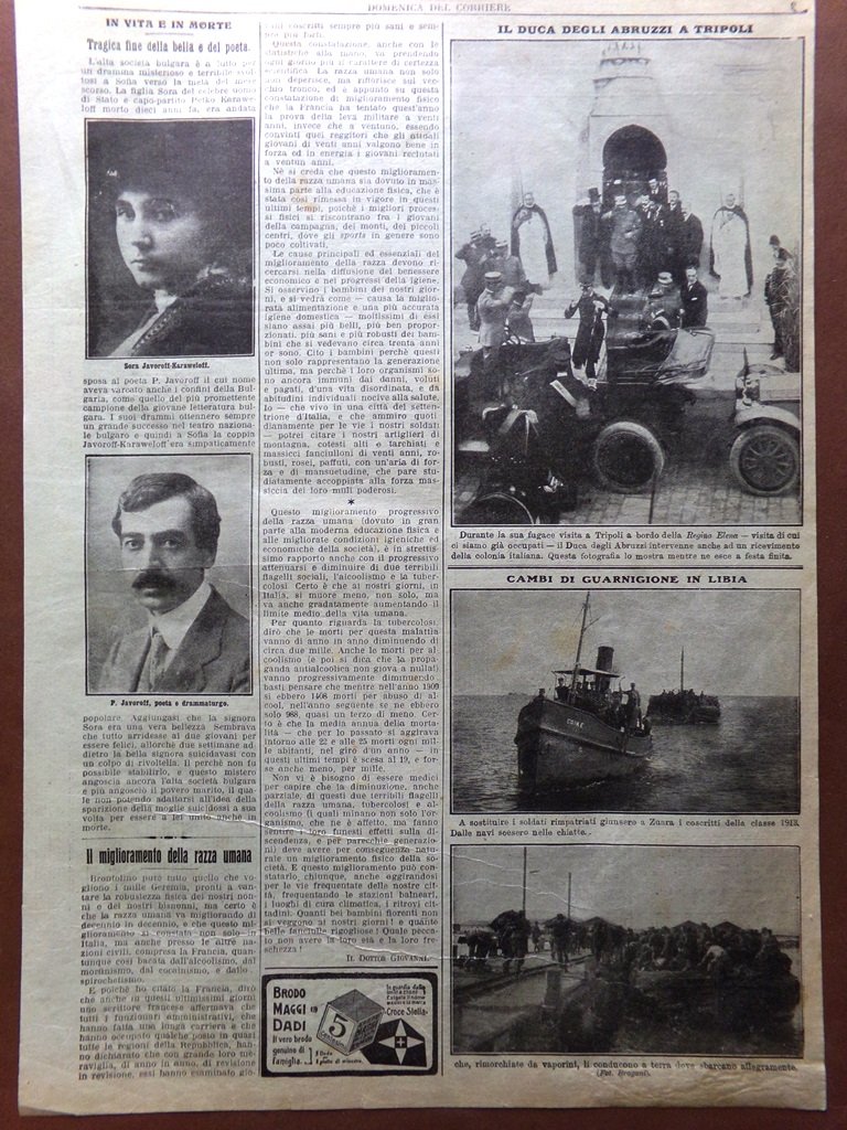 Pagina del 1914 Morte di Pejo Javorov Duca Abruzzi Tripoli Bicicletta Cevasco