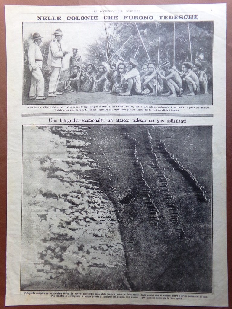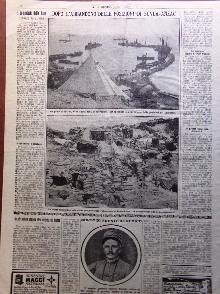 Pagina del 1916 WW1 Attacco Tedesco Gas Asfissianti Colonie Berardi Suvla-Anzac