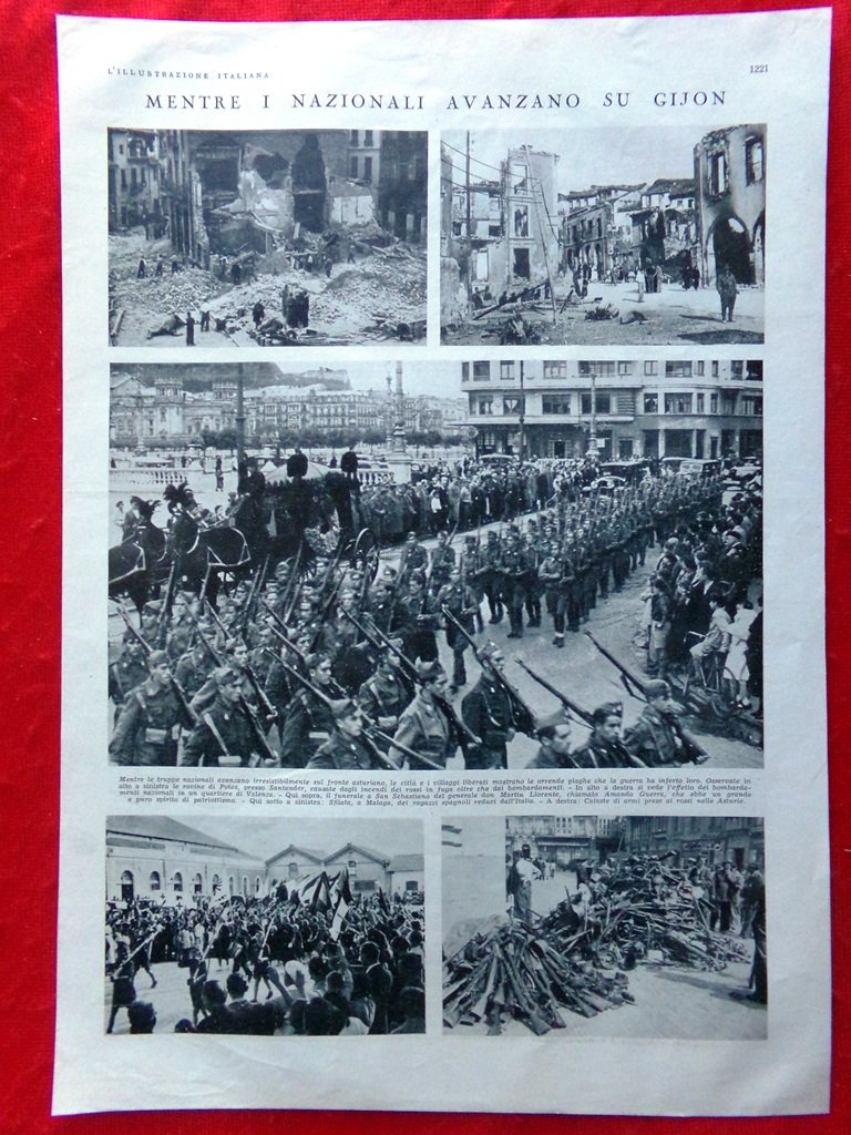 Pagina del 1937 Terrificante Guerra in Cina Avanzata Nazionali su Gijon Spagna