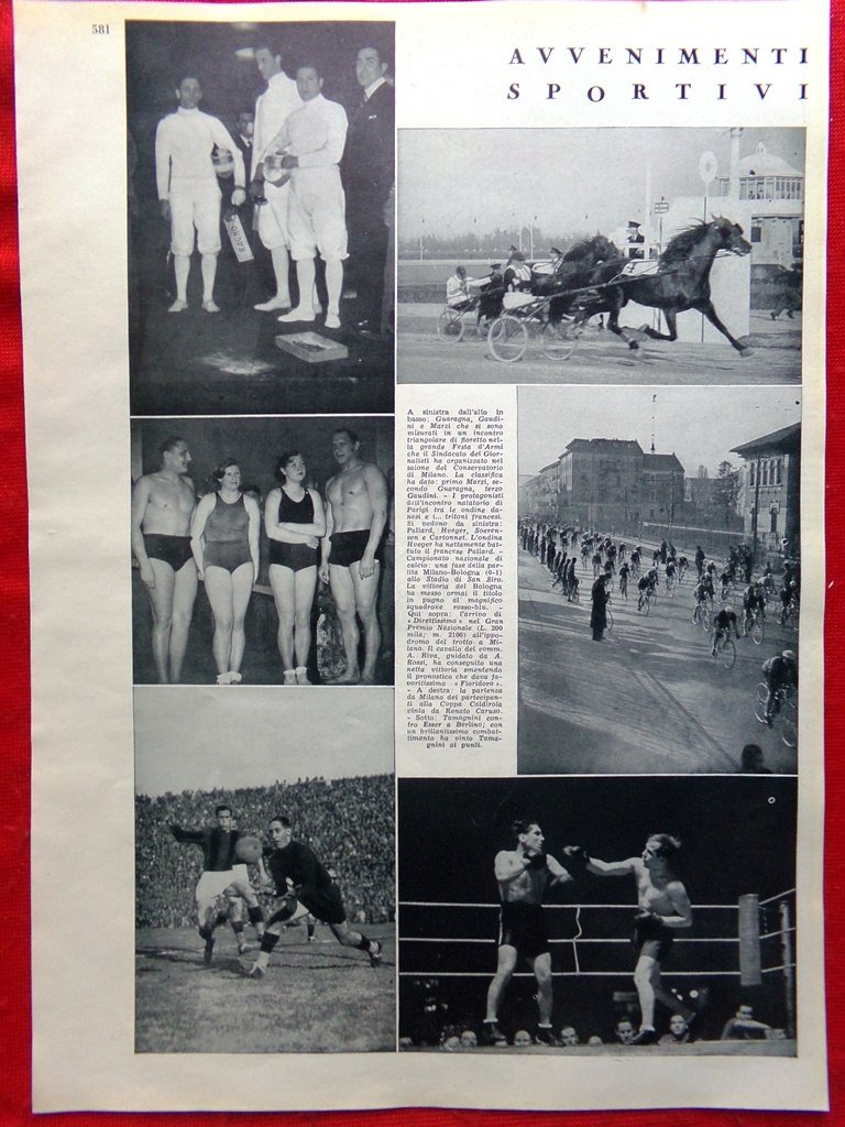 Avvenimenti sportivi: Guaragna, Gaudini, Marzi, Pallard, Hveger, Soerensen, Cartonnet, l'incontro di boxe Tamagnini-Esser
