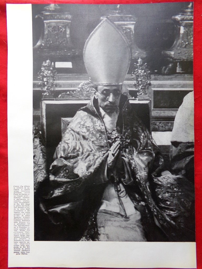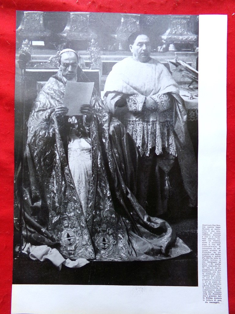 Pagina del 1939 L'aspetto di Pio XII Messaggio al Mondo Cattolico Diacono Canali