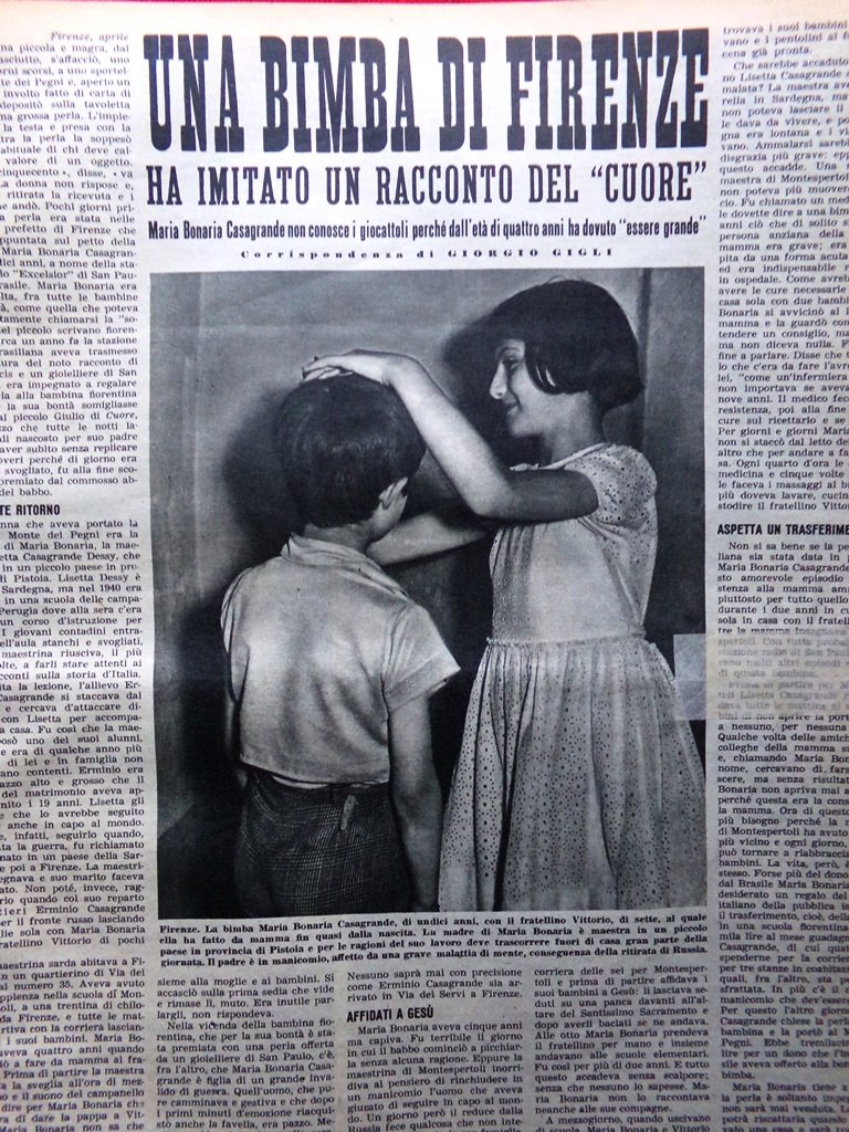 Articolo: una bimba di Firenze ha imitato un racconto del libro "Cuore, maria Bonaria Casagrande (di Giorgio Gigli)
