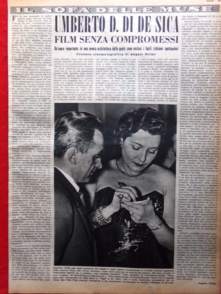 Pagina del 1952 Umberto Film di Vittorio De Sica Nilla Pizzi Nino Besozzi Stalin