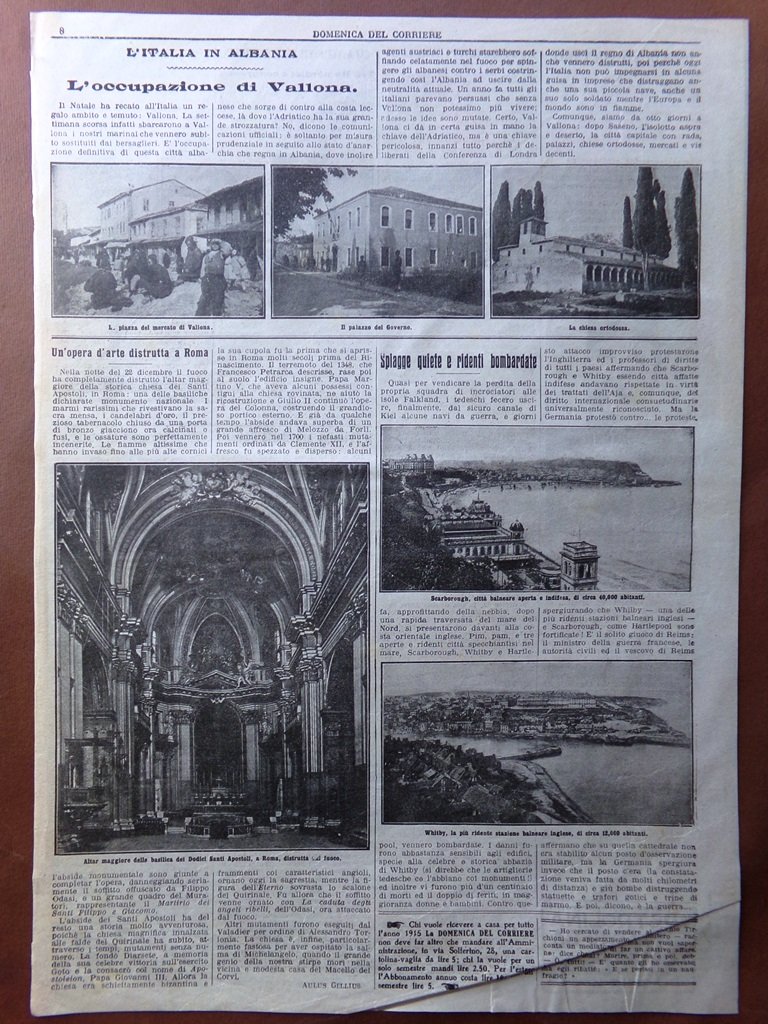 Pagine del 1915 WW1 Occupazione Valona Husayn Kamil Umberto Savoia Scarborough