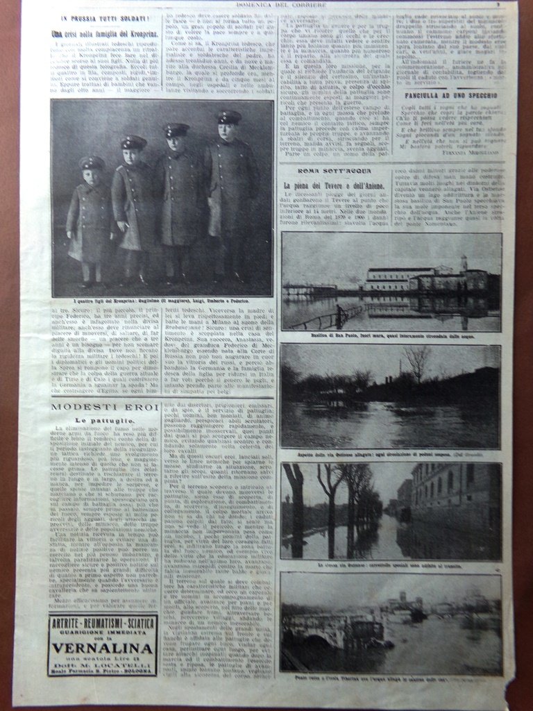 Pagine del 1915 WW1 Piena Tevere Aniene Marconi Hindenburg Kronprinz Bersaglieri