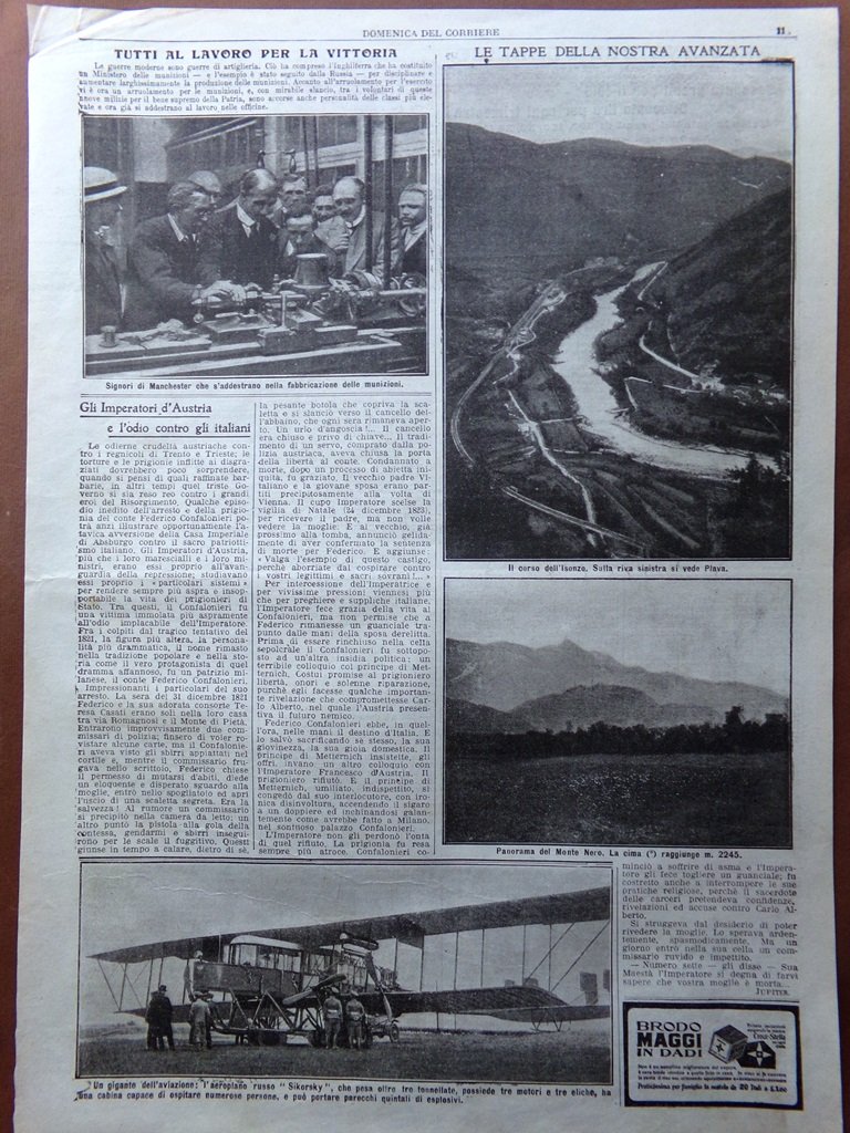 Pagine del 1915 WW1 Sikorsky Avanzata Isonzo Monte Nero Fabbricazione Munizioni