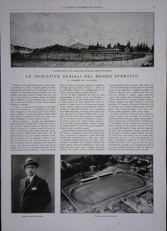 Pagine del 1927 Bologna Mondo Sportivo Campo Ravone Buriani Opificio Turri