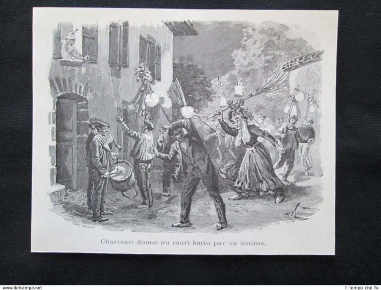 Pandemonio per il marito picchiato dalla moglie Incisione del 1894