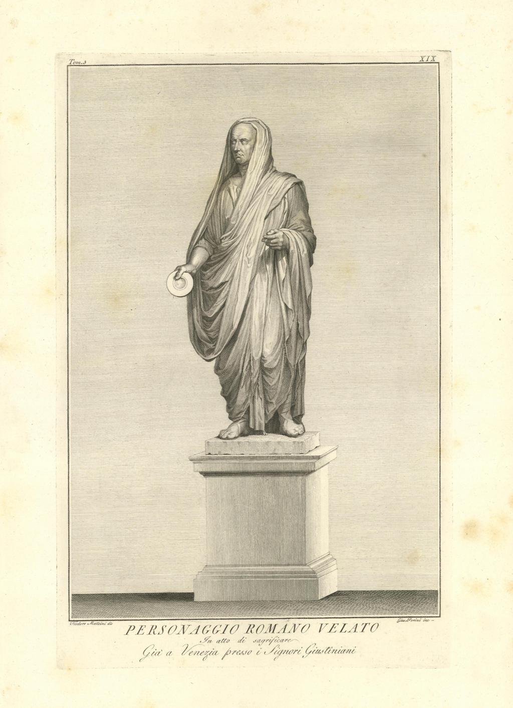PERSONAGGIO ROMANO VELATO / In atto di sacrificare / Già a Venezia presso i Signori Giustiniani | Stampe | Matteini T. dis. & Perini G. inc., Matteini T. dis. & Perini G. inc.