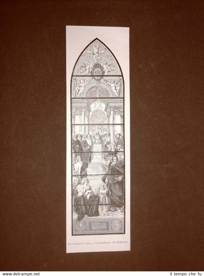 Perugia nel 1877 Vetrata o Invetrata della Cattedrale | Stampe |