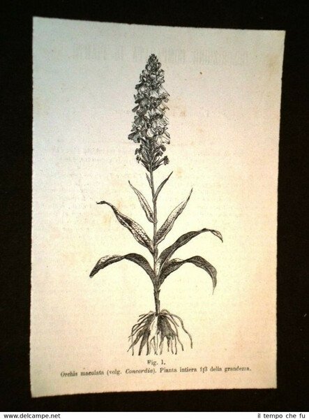 Rara Incisione Estratta da Rivista d'epoca del 1869 Piante e Botanica nel 1869 Pianta Orchis maculata o Concordia UI1869-022T Dimensioni Cm 11,50 x 16,00 Qualora vogliate delle scansioni migliori contattateci, soddisferemo ogni vostra richiesta. Paypal Carta di credito Bonifico bancario Accuratamente adagiate su un cartoncino e protette da pellicola trasparente rigida il tutto viene inserito dentro plico di adeguate dimensioni per proteggerne l'integrità ©