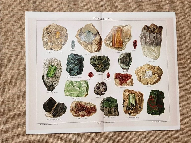 Pietre preziose Tavola del 1890 Rara tavola estratta da pubblicazione del 1890  Stampata su carta non retroscritta Pietre preziose  Dimensioni: Cm 29,00 x 24,00 Codice prodotto: GEO-161
