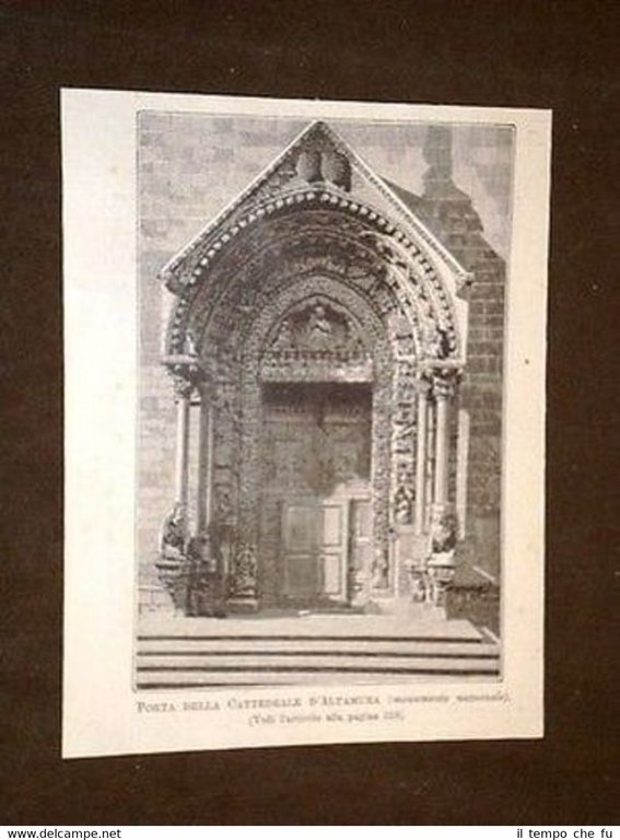 Rara Stampa Estratta da Rivista d'Epoca Porta della Cattedrale di Altamura IP1899-033T Dimensioni Cm 14,00 x 18,00 Qualora vogliate delle scansioni migliori contattateci, soddisferemo ogni vostra richiesta. Paypal Carta di credito Bonifico bancario Accuratamente adagiate su un cartoncino e protette da pellicola trasparente rigida il tutto viene inserito dentro plico di adeguate dimensioni per proteggerne l'integrità