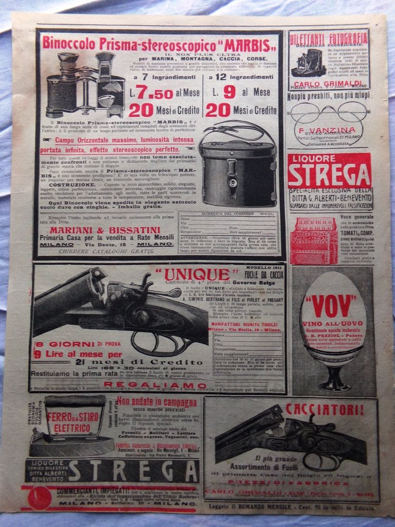 Pubblicità del 1911 Binocolo Prisma Marbis Unique Strega Vov Grimaldi Fucili