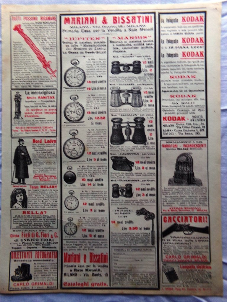 Pubblicità del 1911 Mariani Bissatini Stufa Sanitas Grimaldi Enrico Fiori Kodak