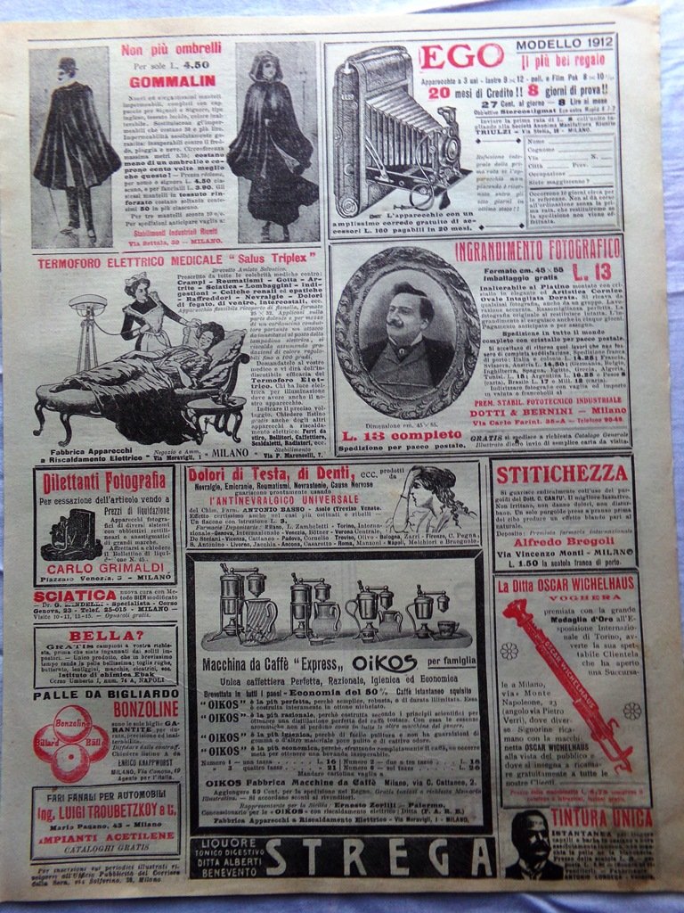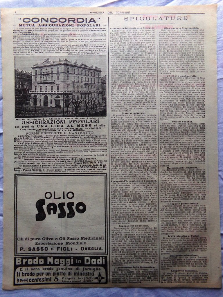 Pubblicità del 1912 Concordia Assicurazioni Gommalin Caffè Oikos Dotti Bernini