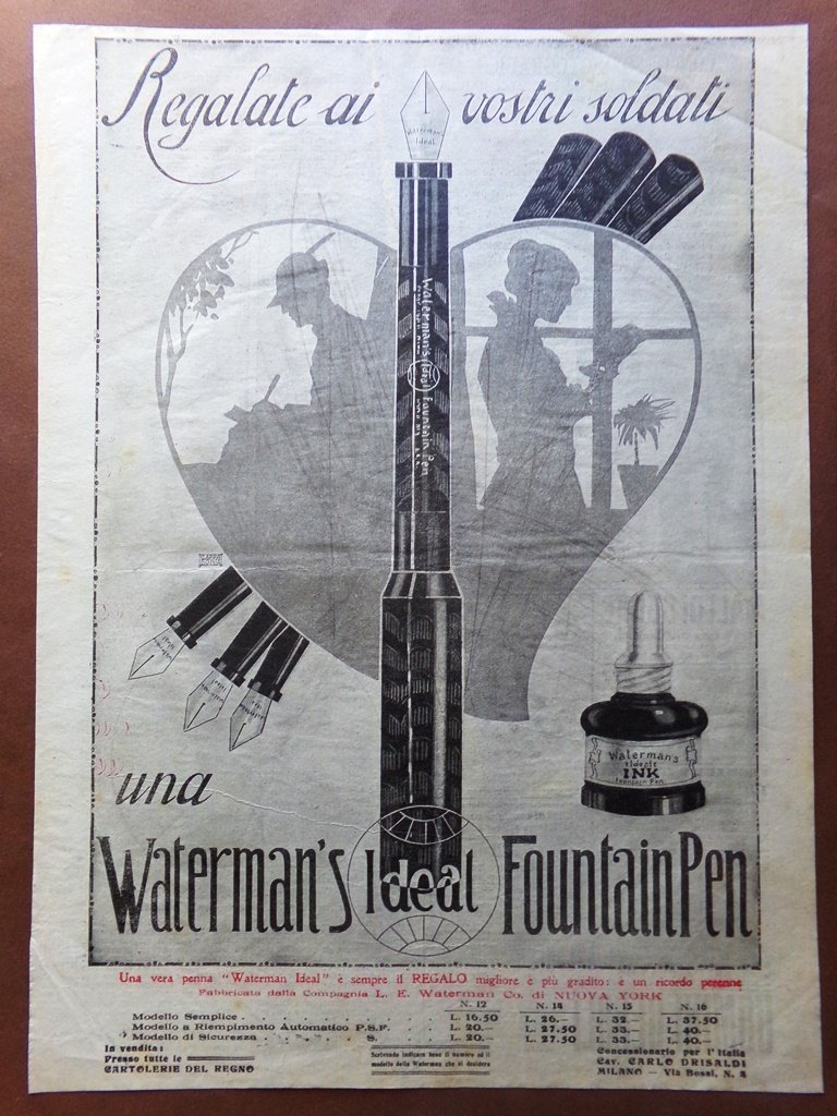 Pubblicità del 1916 Waterman's Fountain Pen Penna Regalo Migliore Soldati WW1