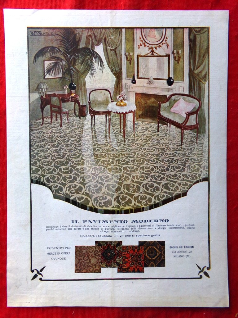 Pubblicità del 1925 Pavimento Moderno Società del Linoleum Milano