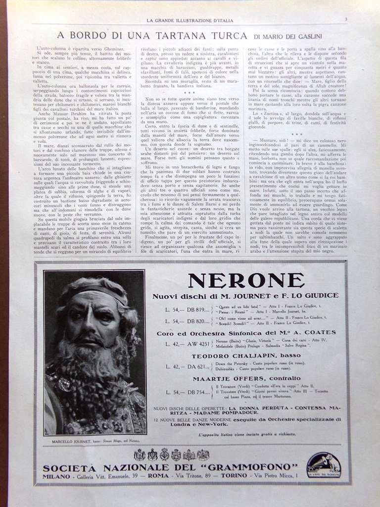 Pubblicità del 1925 Società Grammofono Buzzacchi Radiatori Tartana Turca Gaslini