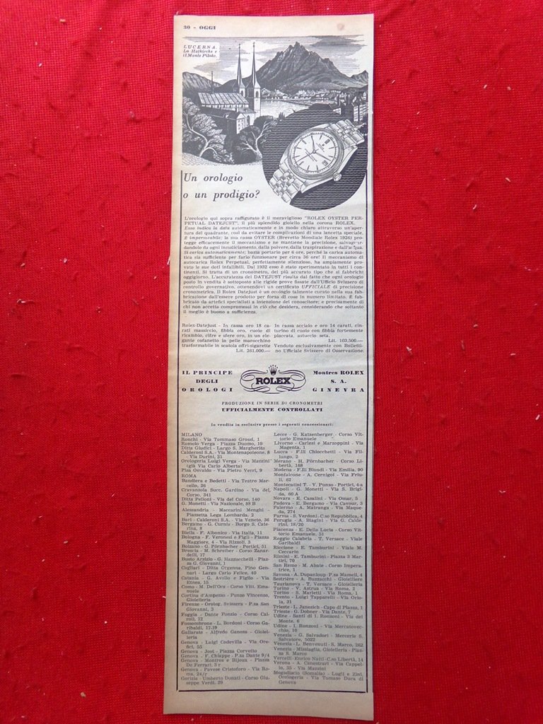 Pubblicità del 1952 Rolex Orologio Lucerna Hofkirche Monte Pilato