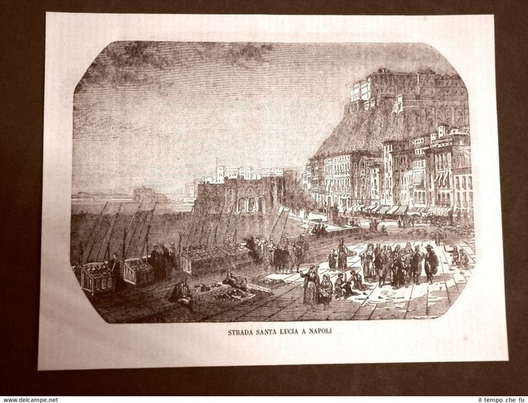 Rarissima veduta della strada Santa Lucia a Napoli del 1865 Campania | Stampe |
