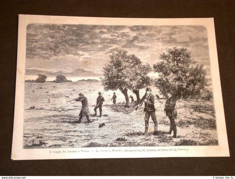Rara Incisione Estratta da Rivista d'epoca del 1881 Re Umberto I di Savoia a Vienna nel 1881 Caccia a Himberg II1881-029T Cm 24,00 x 18,00 Qualora vogliate delle scansioni migliori contattateci, soddisferemo ogni vostra richiesta. Paypal Carta di credito Bonifico bancario Accuratamente adagiate su un cartoncino e protette da pellicola trasparente rigida il tutto viene inserito dentro plico di adeguate dimensioni per proteggerne l'integrità