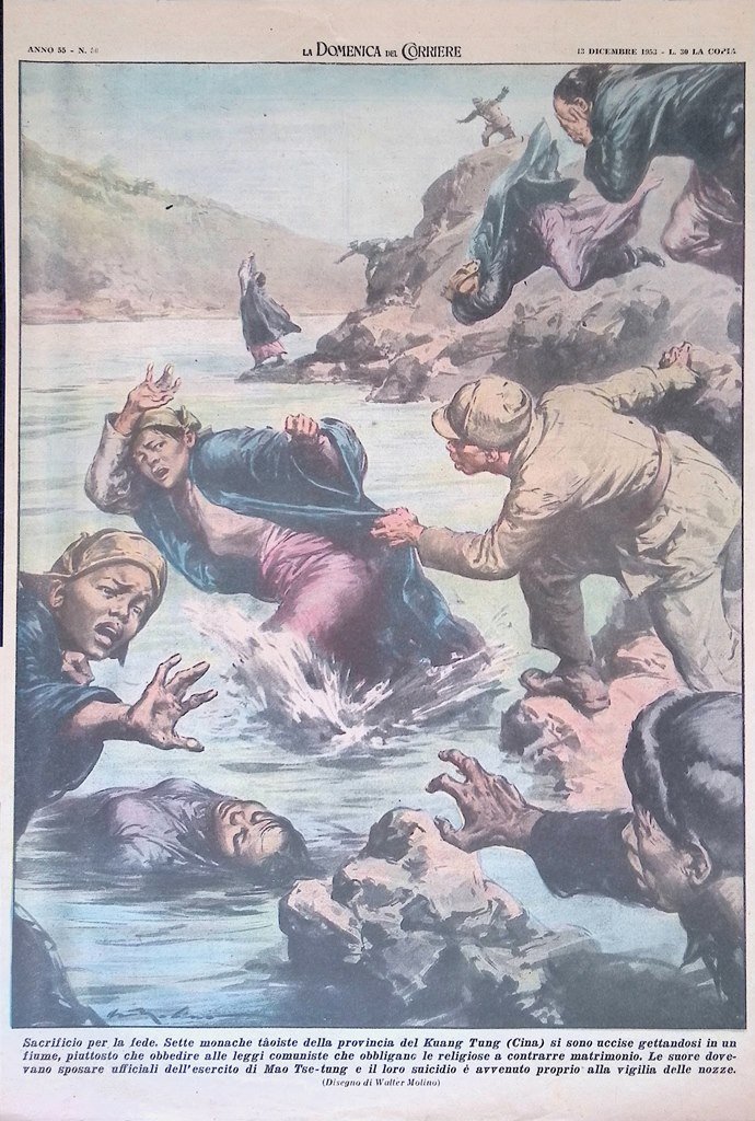 Retrocopertina Domenica del Corriere nr. 50 del 1953 Sacrificio Monache Taoiste